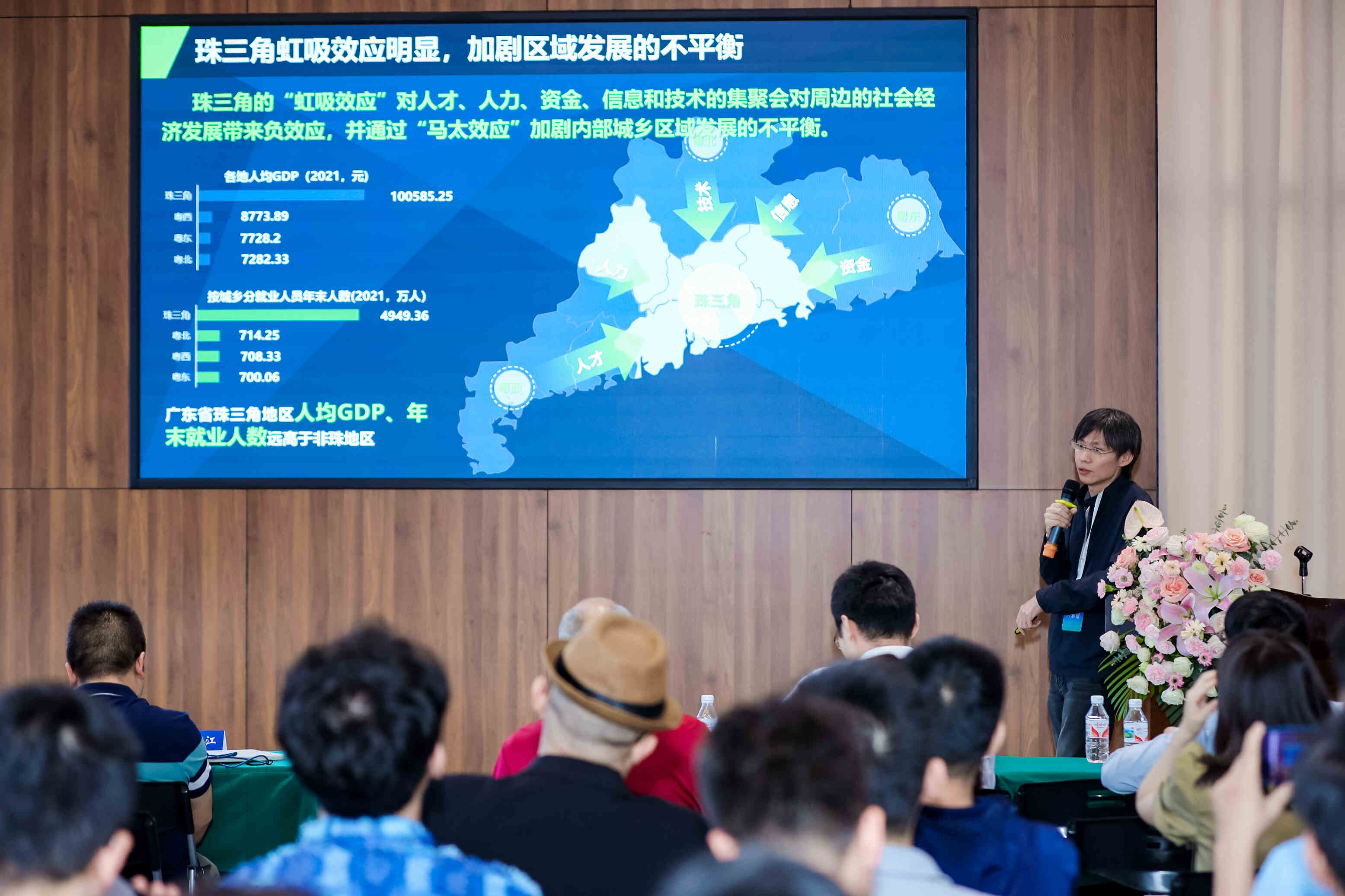 會(huì)上,李鵬作“廣東省鄉(xiāng)村振興駐鎮(zhèn)幫鎮(zhèn)扶村規(guī)劃工作思考與實(shí)踐”專題報(bào)告。李鵬以清遠(yuǎn)英德市連江口鎮(zhèn)駐鎮(zhèn)幫鎮(zhèn)扶村及鄉(xiāng)村振興規(guī)劃工作為例,提煉了連江口駐鎮(zhèn)幫鎮(zhèn)扶村工作中圍繞鄉(xiāng)村生態(tài)、產(chǎn)業(yè)、文化、空間、資金、治理等全要素開(kāi)展城鄉(xiāng)資源鏈接整合、促進(jìn)城鄉(xiāng)融合的具體實(shí)踐,并展開(kāi)分享了鄉(xiāng)村振興的本質(zhì)在于城鄉(xiāng)資源的自由流動(dòng)的見(jiàn)解。