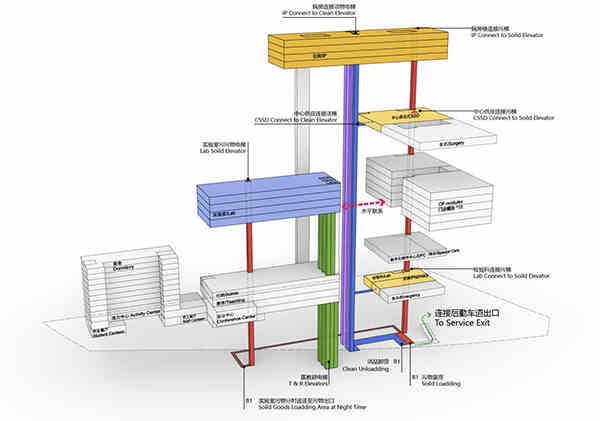 整體規(guī)劃尊重“醫(yī)、產(chǎn)、學(xué)、研”一體??漆t(yī)院的醫(yī)療、教研和會議招待三大不同功能所需,獨立設(shè)置,合理分流,實現(xiàn)防院感要求。