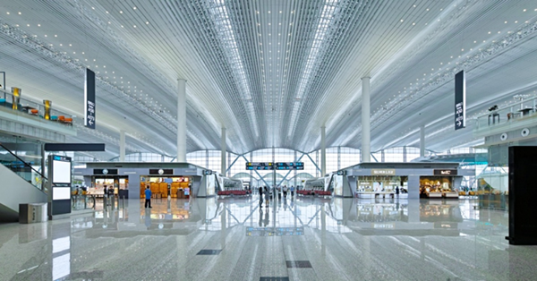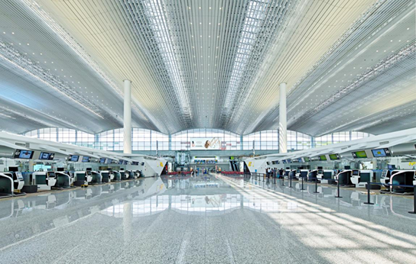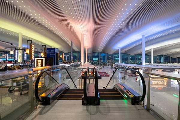 該技術(shù)利用玻璃幕墻、屋面采光天窗與首創(chuàng)漸變旋轉(zhuǎn)式吊頂相結(jié)合,充分利用自然采光,有效降低能耗;采用由專門(mén)研發(fā)的LED燈具、建筑裝飾、建筑結(jié)構(gòu)多維度合理搭配的照明系統(tǒng),通過(guò)直接照明的方式,充分利用光能保證均勻度,有效控制不舒適眩光,節(jié)能效果顯著;通對(duì)智能照明控制技術(shù)的研究,實(shí)現(xiàn)調(diào)光調(diào)色,有效提升航站樓高大空間的照明舒適性,營(yíng)造個(gè)性化的沉浸式氛圍照明,實(shí)現(xiàn)綠色照明的效果,為交通建筑高大空間的照明設(shè)計(jì)提供了案例參考。